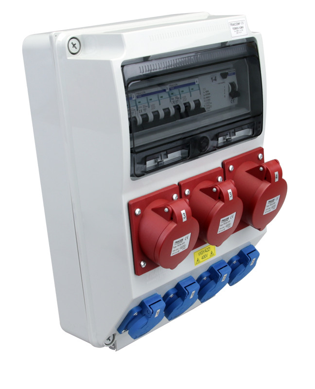 Aljzatok: 4 db egyfázisú 16A, 2 db 5P 16 A és 1 db 5P 32A-es aljzattal,