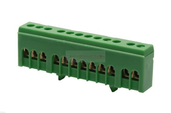 Szigetelt bekötőkapocs (zöld), földelő kapocs kalapsínhez - 12 furattal