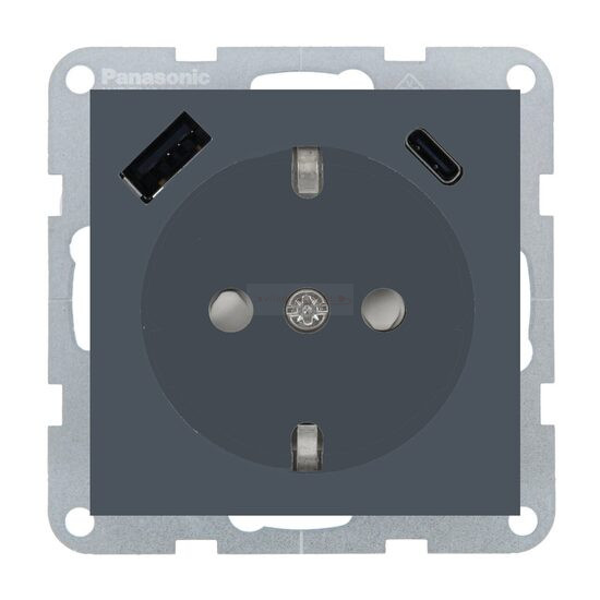 Panasonic Karre Plus 55 Soft Touch Gyermekvédős dugalj + USB A + USB C keret nélküli Éjfekete