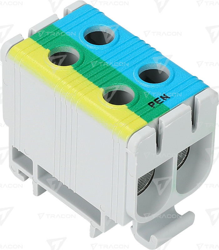 Főáramköri leágazó kapocs, sínre szerelhető, kék,zöld/sárga 6-50mm2