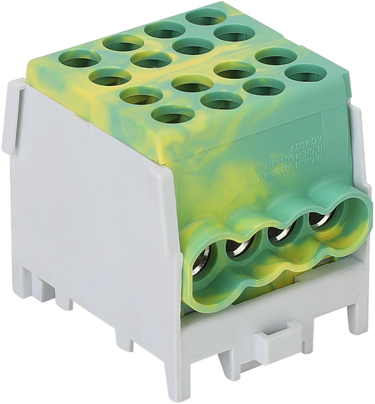 Főáramköri leágazó kapocs négyes, sínre szerelhető, zöld/sárga 2.5-25mm2