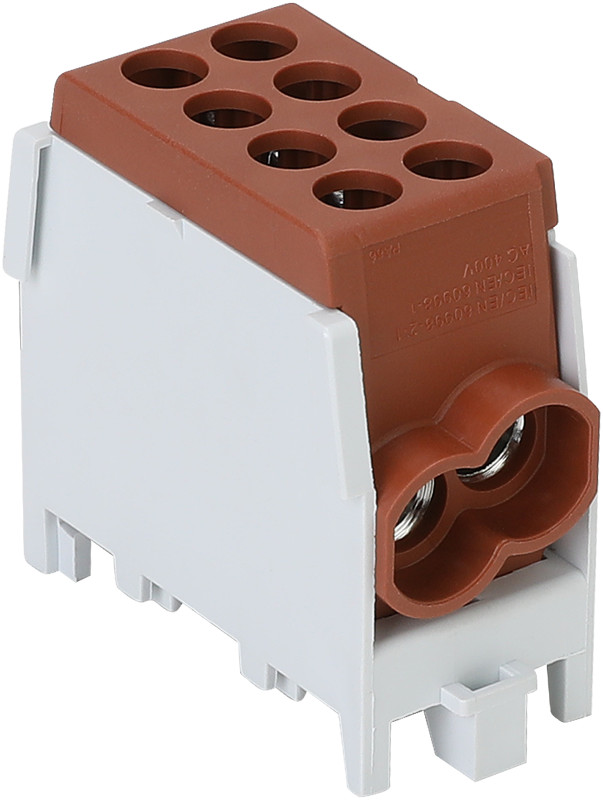 Főáramköri leágazó kapocs dupla, sínre szerelhető, barna 2.5-25mm2