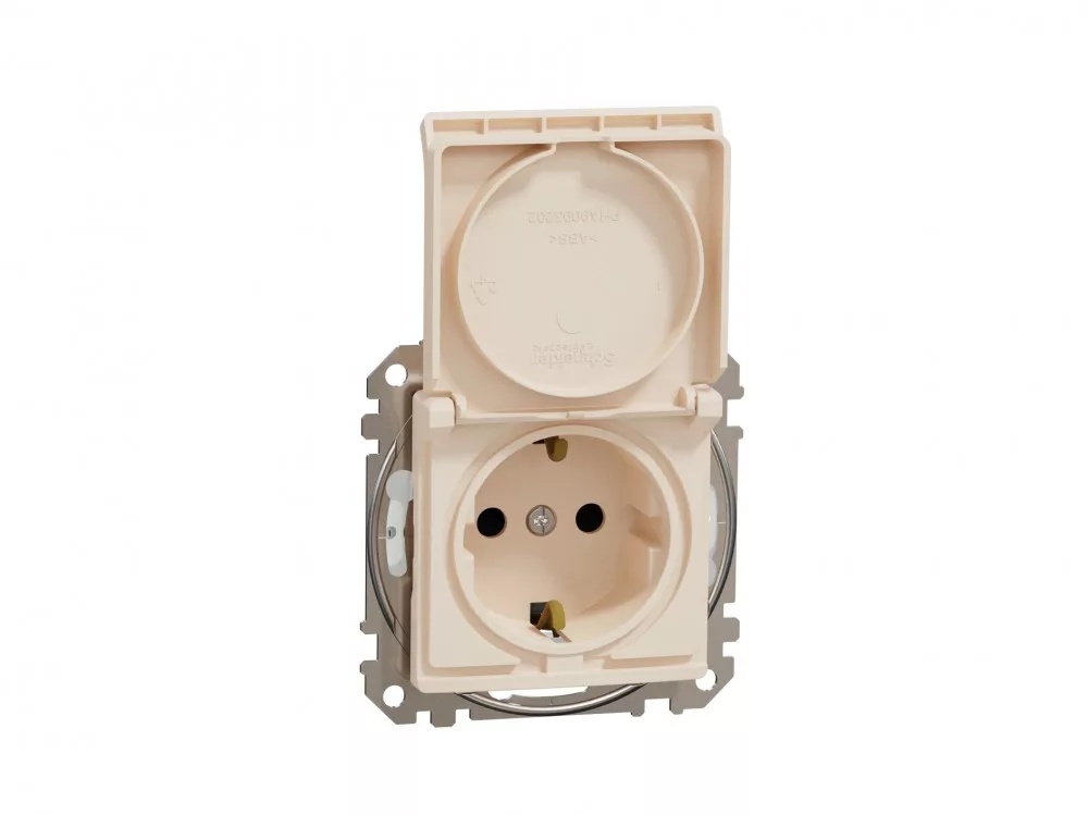 ÚJ SEDNA 2P+F csatlakozóaljzat biztonsági zsaluval, csapófedeles, csavaros bekötés, 16A, IP44, bézs