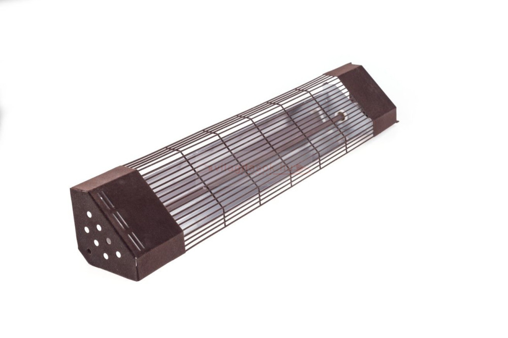 A kerámiacsöves infrasugárzó sötétbarna védőráccsal, sarok kivitel 450W ideális választás infraszaunák korszerű, kényelmes és biztonságos fűtéséhez. Sarokba szerelhető kialakítása helytakarékos megoldást kínál, így kisebb kabinokban is könnyen elhelyezhető, miközben optimális hőeloszlást biztosít.